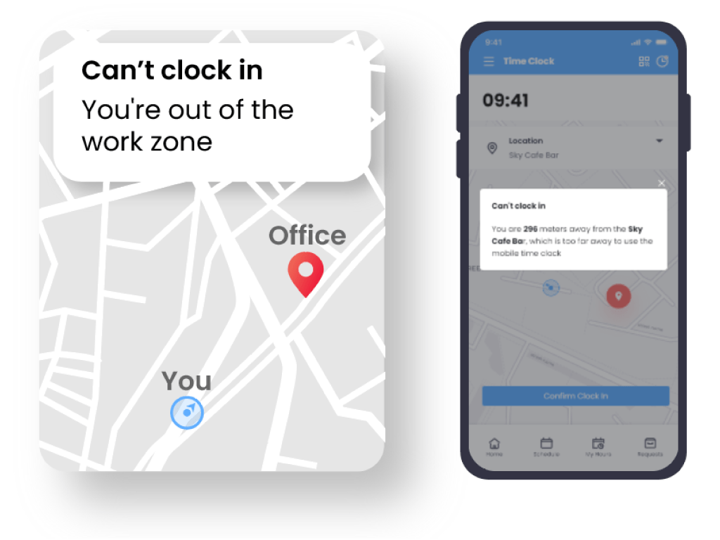 Location Tracking: Employees’ movements are tracked based on GPS data, automatically recording when they enter or exit these predefined geofenced areas. This allows verification of where and when employees are working.