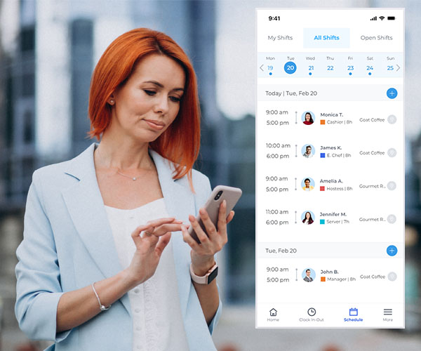Real-time shift scheduling and time tracking mobile app that includes both employees and managers